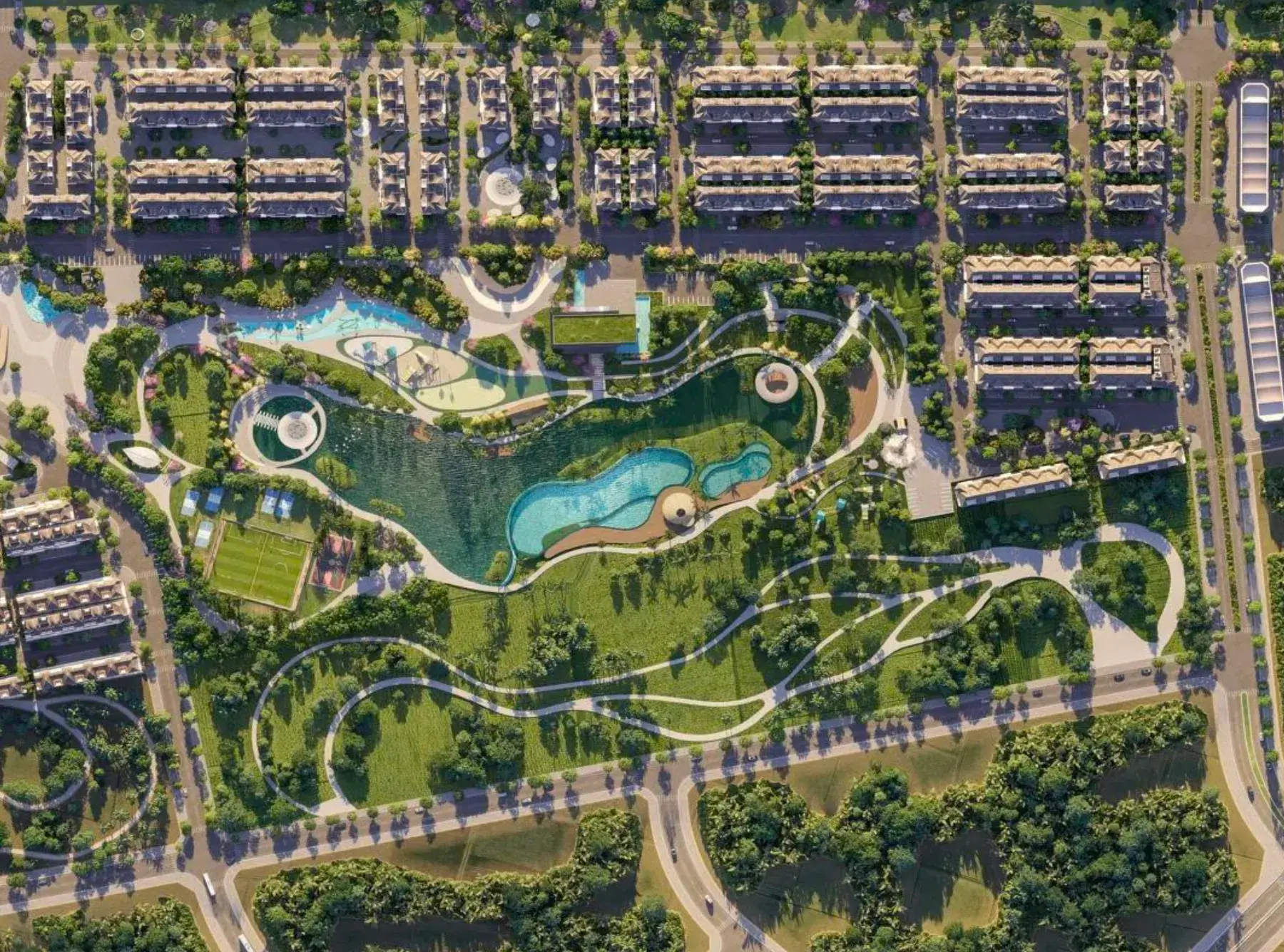 Công viên trung tâm 8ha cùng hồ bơi nổi 3.300m2 tuyệt mỹ.